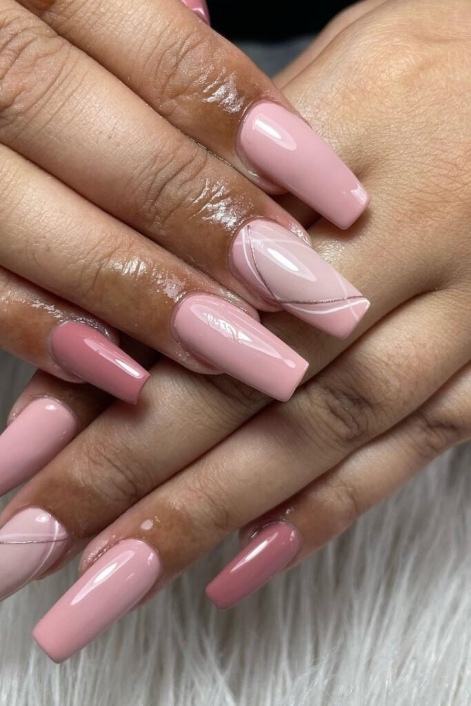 Blended pink mauve nails mix pink and mauve together for a smooth transition. The blend should look natural, not striped.