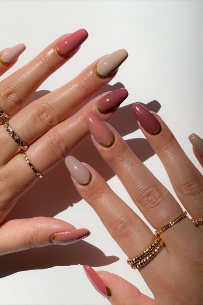 Golden cuticle mauve nails place gold near the cuticle area. This draws attention without taking over the nail.
