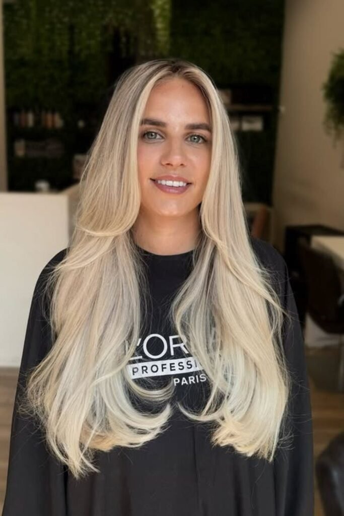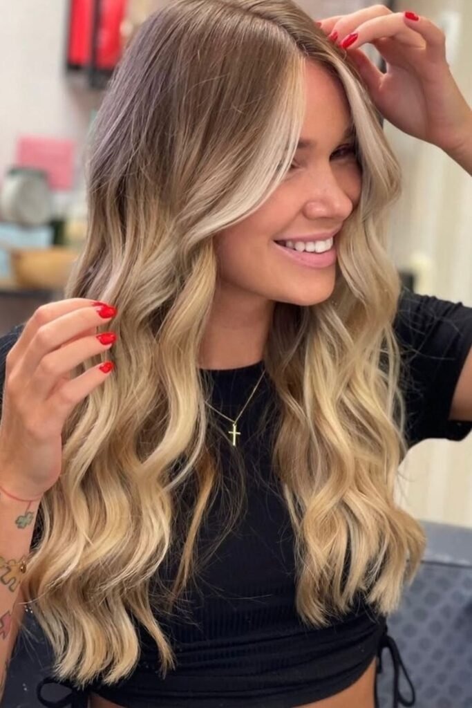 Bright vanilla balayage creates a light, creamy look over a dark base. The lift is clean and soft, not harsh. This style gives a modern contrast that still feels smooth. It is great for people who want a lighter look but want to avoid sharp blonde lines.