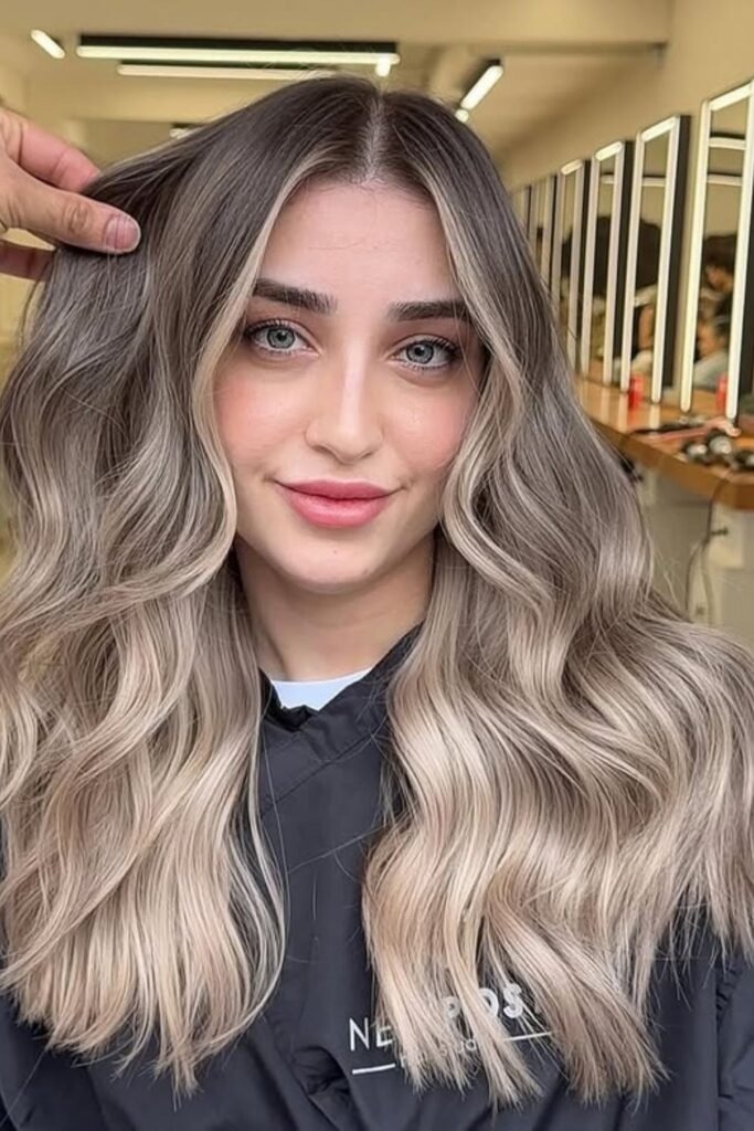 Rooted ash balayage keeps the roots dark while the ends fade into a soft ash tone. This style grows out naturally and needs fewer touch-ups. It gives a modern, relaxed look that suits busy lifestyles.