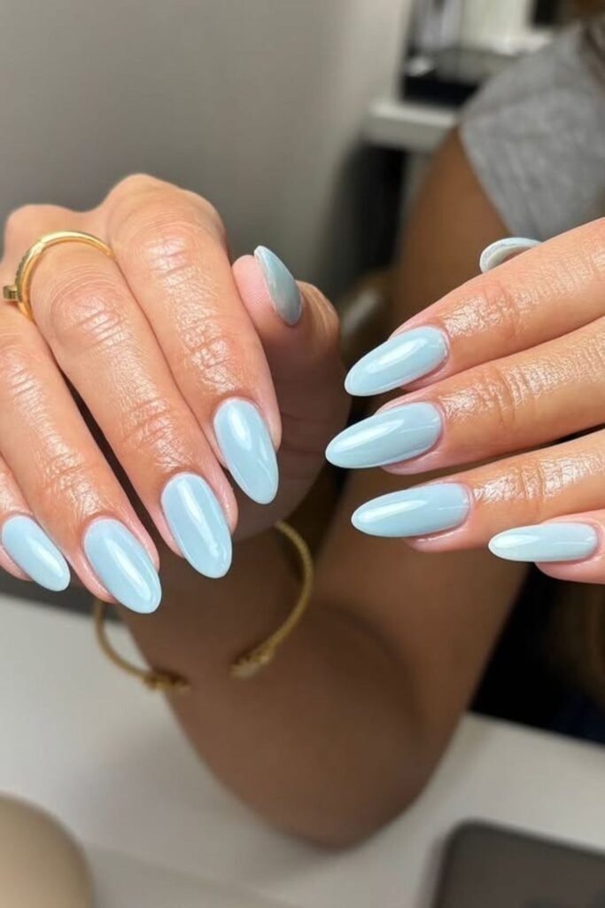 Blue works on all nail shapes, but the effect changes with the shape. Almond and oval nails make blue feel soft and natural. These shapes are perfect for pastel and cloudy blues.