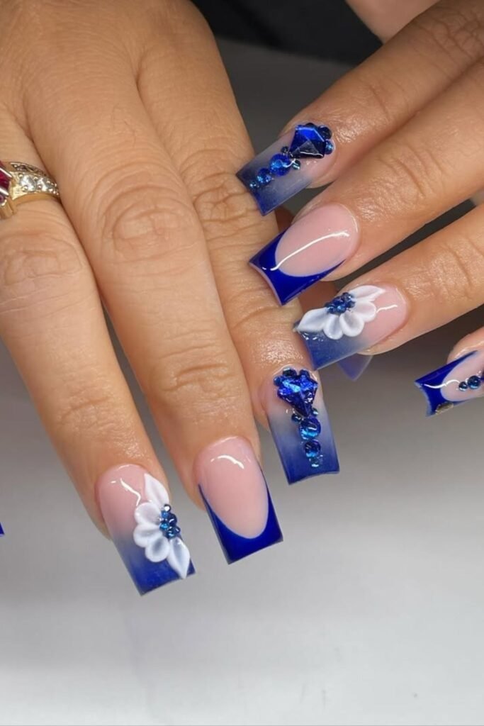 This design feels mature and elegant. It suits longer nails and looks great on almond or coffin shapes. Navy bloom nails are ideal for special occasions or when you want something detailed but not loud.