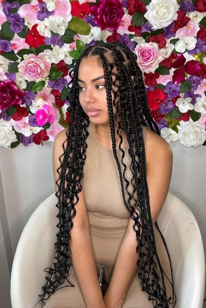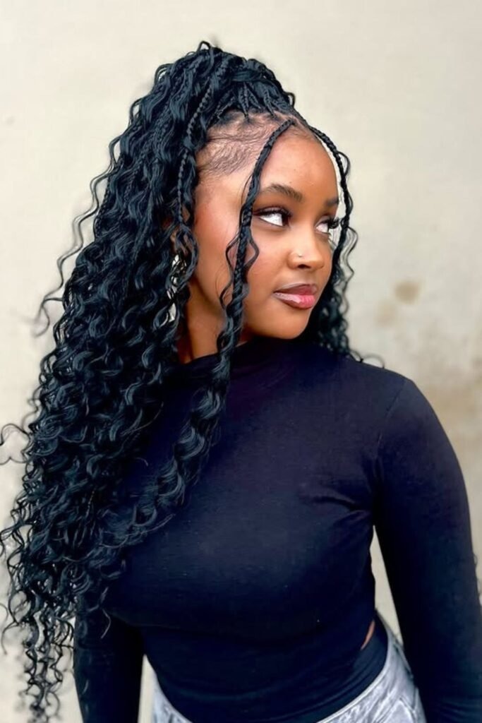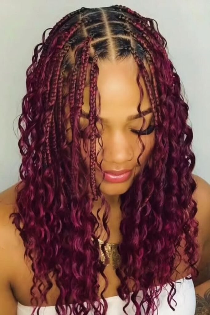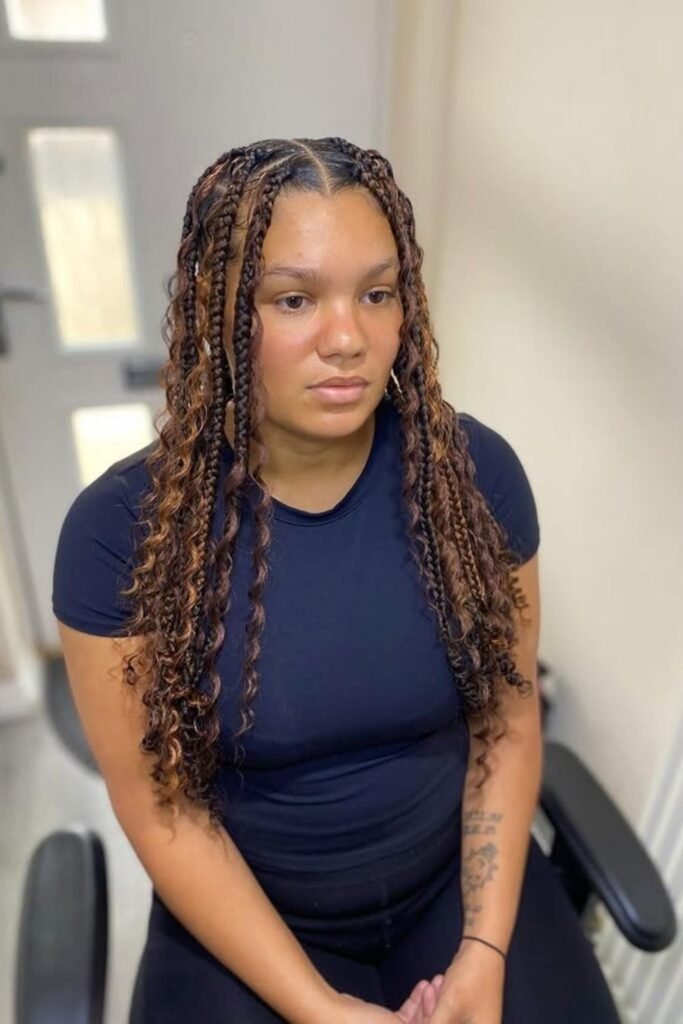 This style feels fresh and modern for 2026. The curls often have a lighter shade than the braids, which adds depth. It looks especially good on medium to dark skin tones.