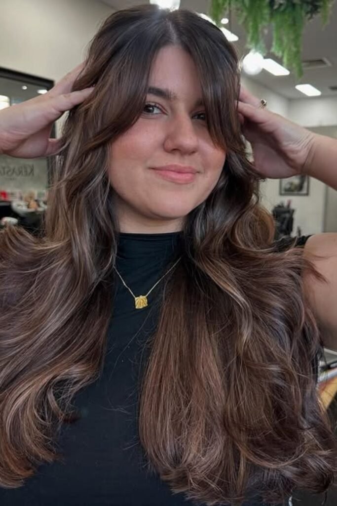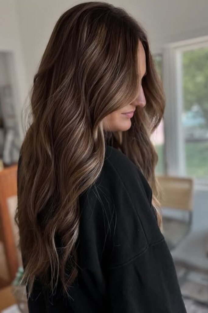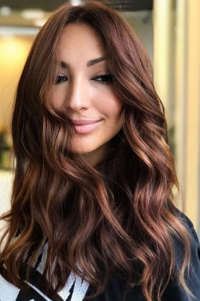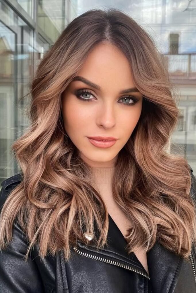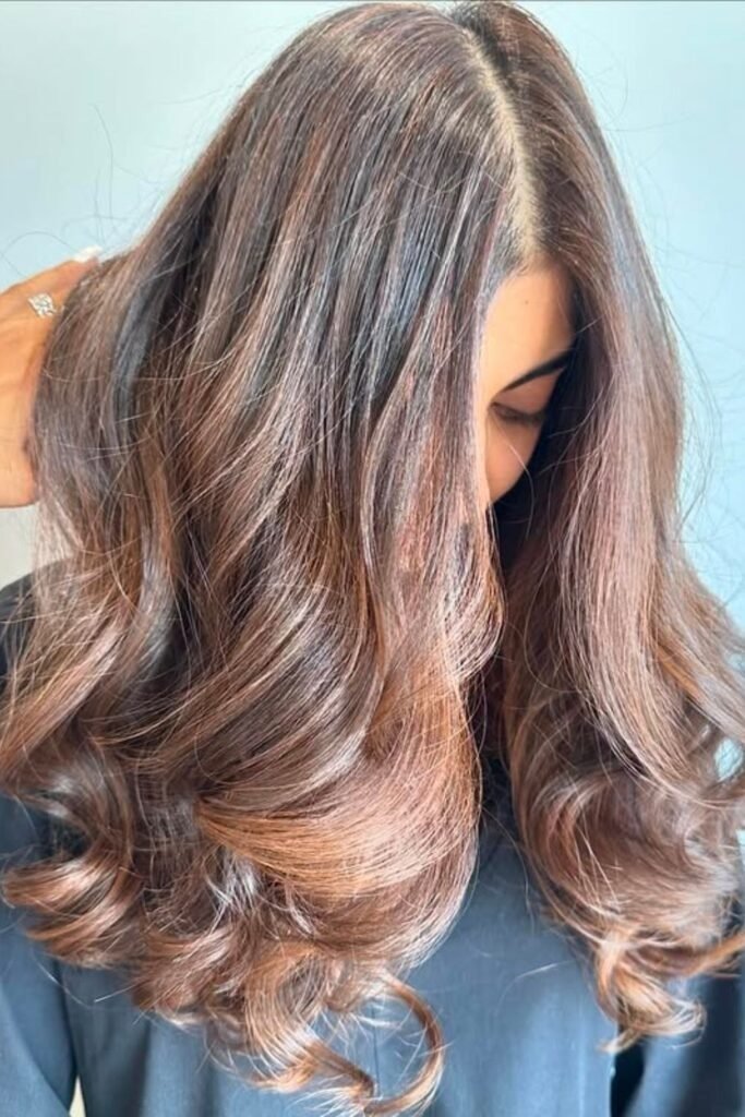 It suits warm skin tones and adds depth without harsh lines. This style looks best on long hair.