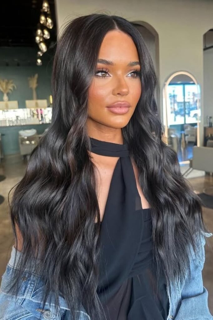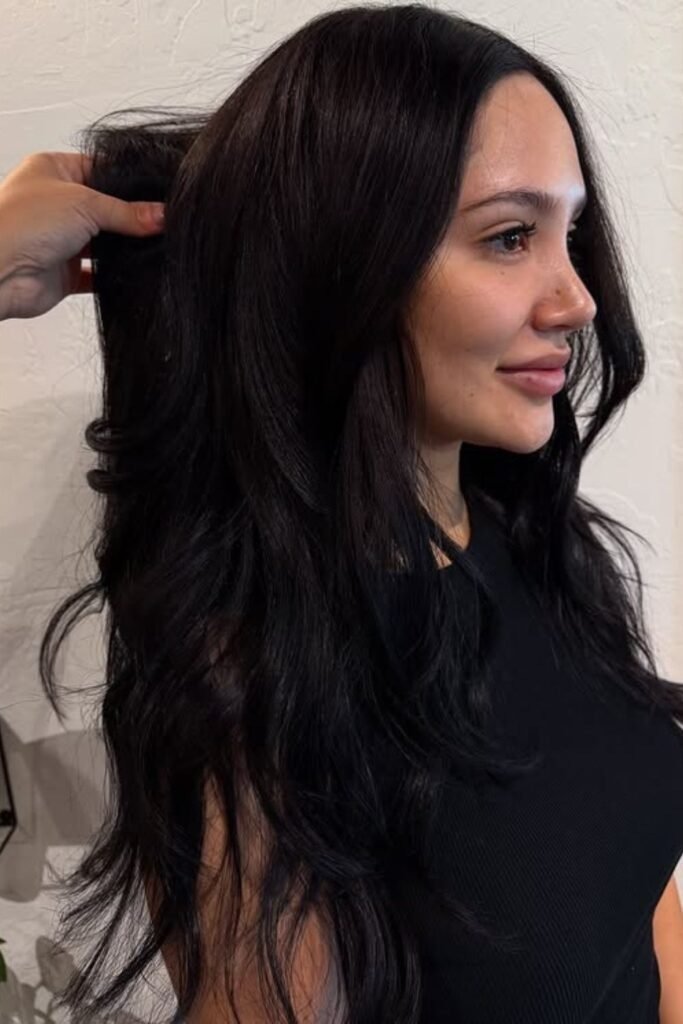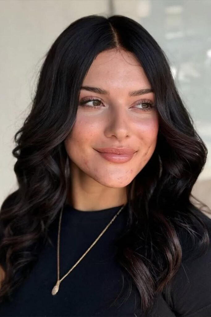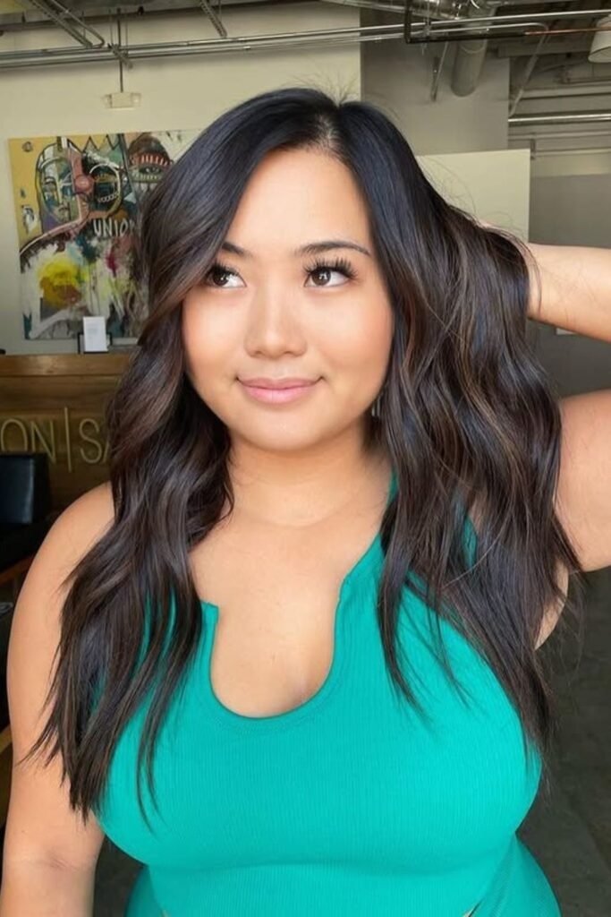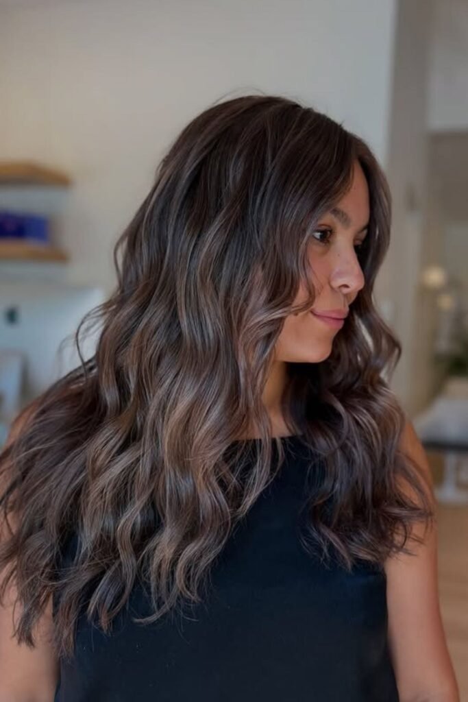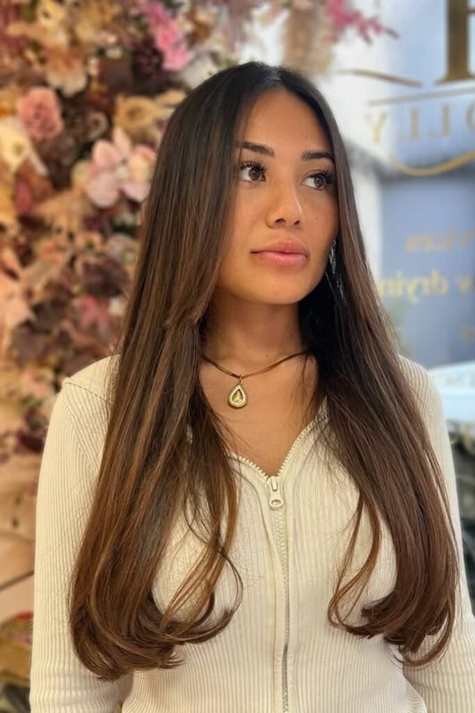 It suits warm skin tones and adds depth without harsh lines. This style looks best on long hair.