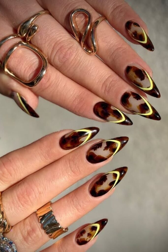 Tortoise gold tips mix classic tortoise shell patterns with thin gold edges. The base stays natural while the tips shine softly. This look feels polished without being heavy. It is perfect for people who want something stylish but not loud. The gold adds warmth that fits fall light.