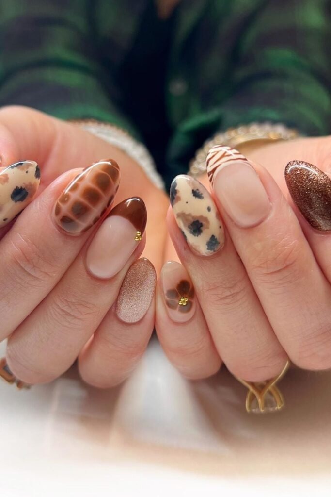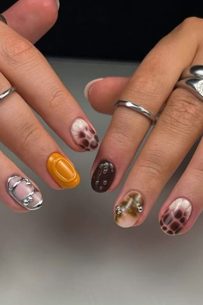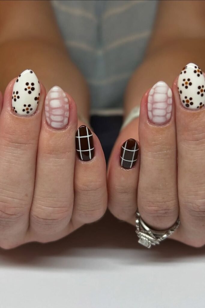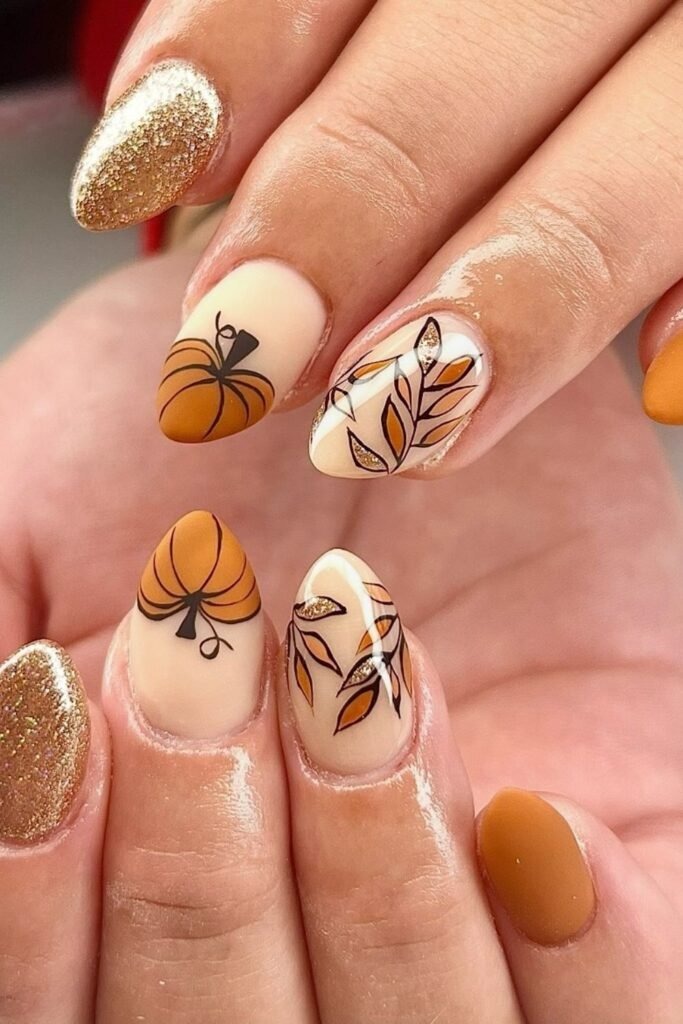Fall mix match nails use different designs on each nail but keep the same color family. Browns, creams, and soft golds work together. This style lets you enjoy many fall trends at once. It feels personal and creative, which is why it remains popular in 2025.