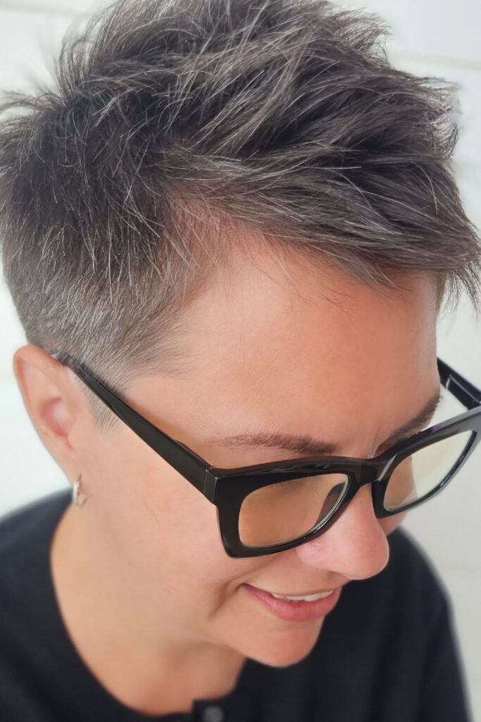 Silver or gray hues paired with textured cuts enhance fine hair in a modern, chic way. Short, jagged layers at the crown create depth while showing off the color. Light styling sprays can separate strands, giving fine hair more visual density and movement.