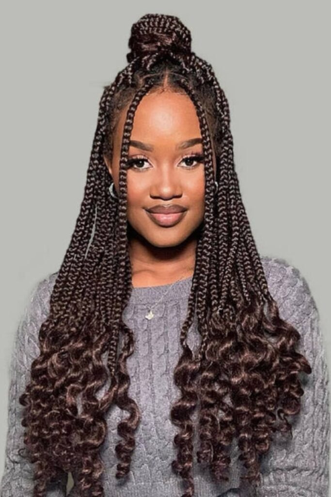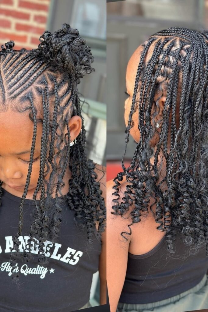 This style is creative and playful. It is popular with younger women and for special events. In 2026, design braids are still trending, but they are softer than before. The curls keep the look balanced and wearable.