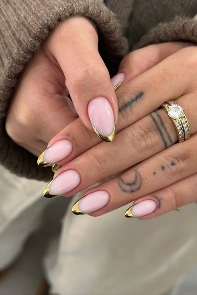 Classic gold tips are clean and even. They follow the nail shape closely. This style never goes out of trend because it works with any outfit. The key is keeping the gold smooth and not too thick.