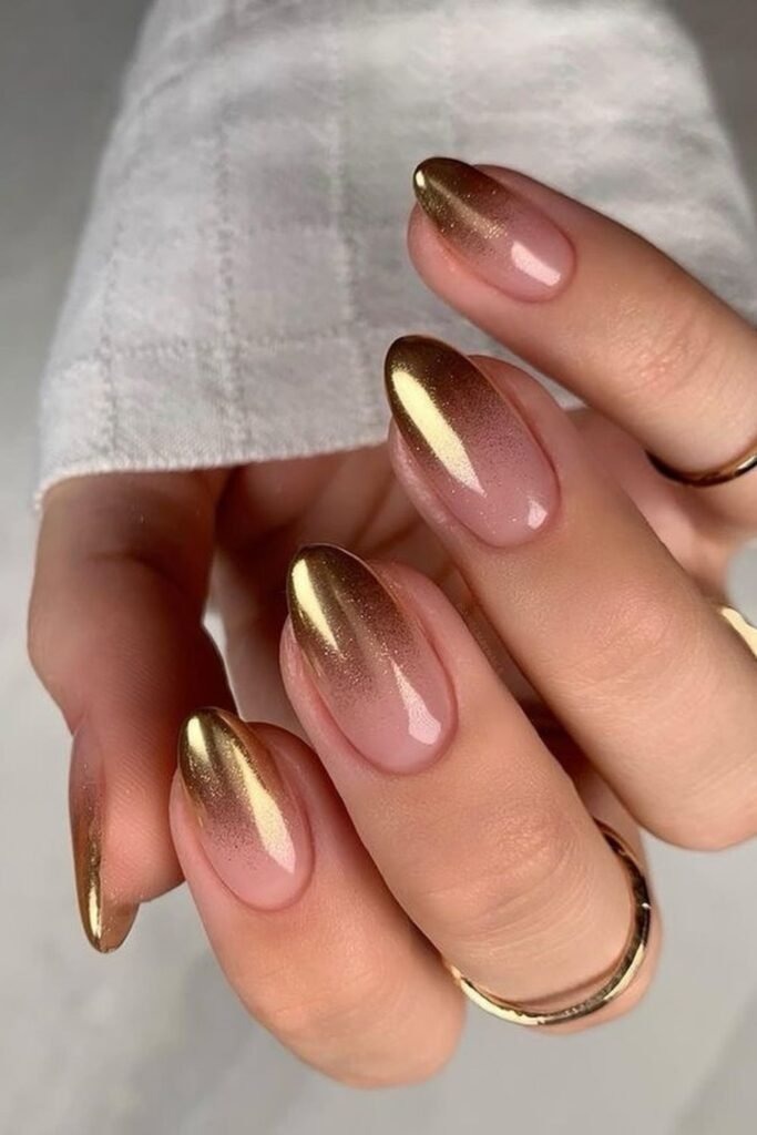 Chrome gold fade starts strong at one end and fades out softly. The fade keeps the shine from feeling heavy. This style works well on medium-length nails. It gives depth without extra art. The smooth blend is key to making it look high quality.