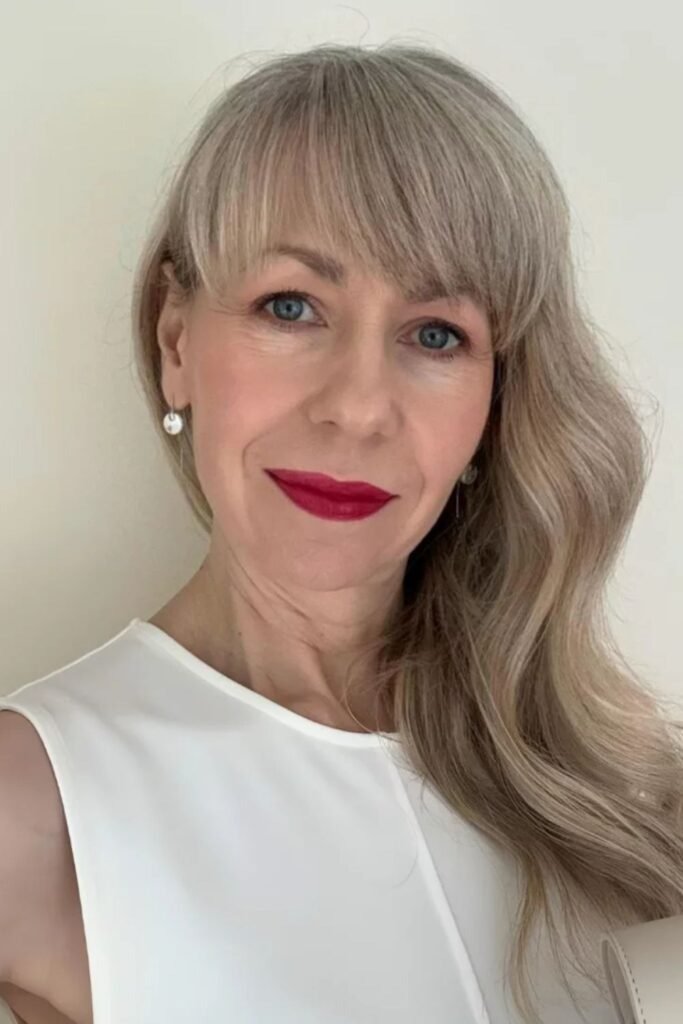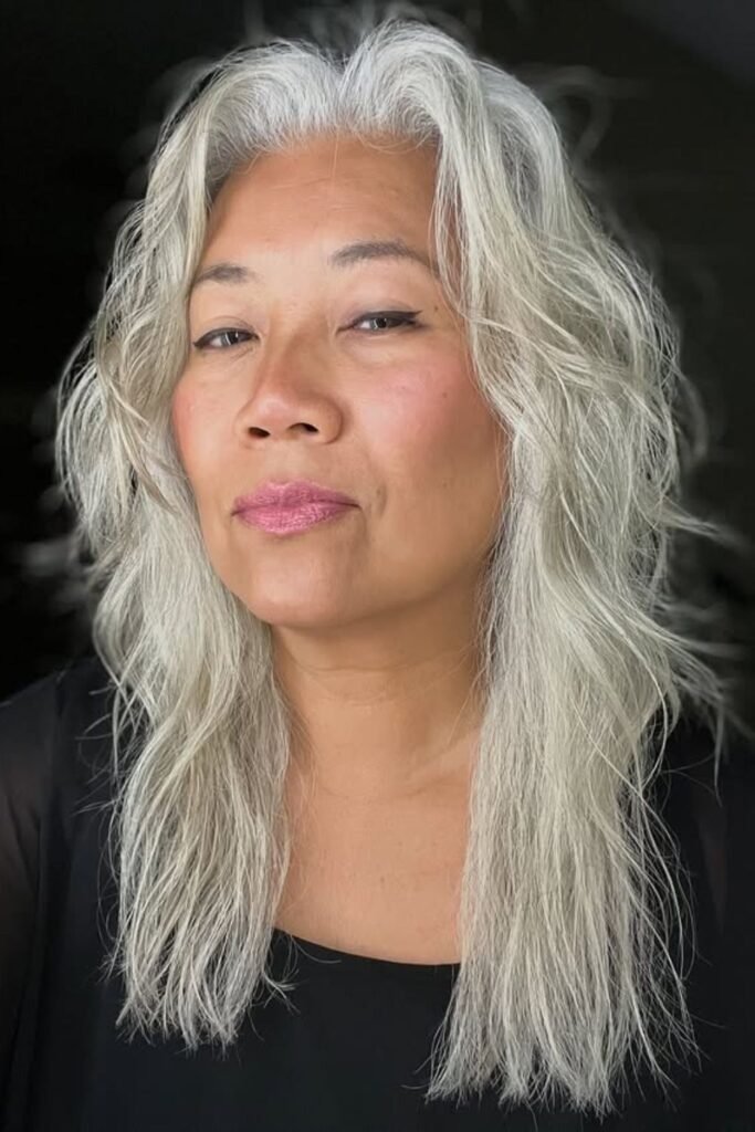 Long hair can still look graceful at any age when it is cut correctly. Soft long layers remove heaviness and add movement. This prevents long hair from pulling the face downward.