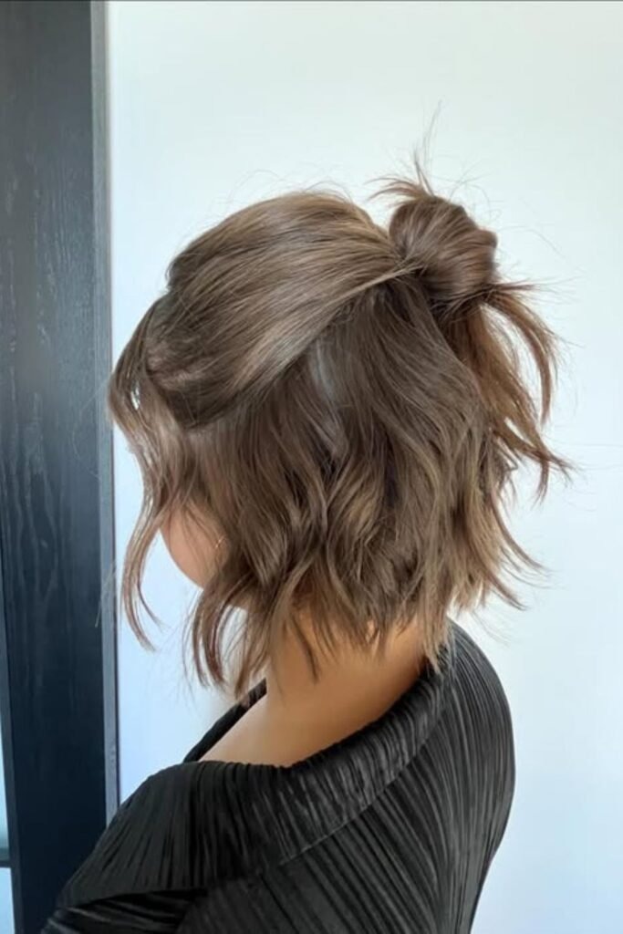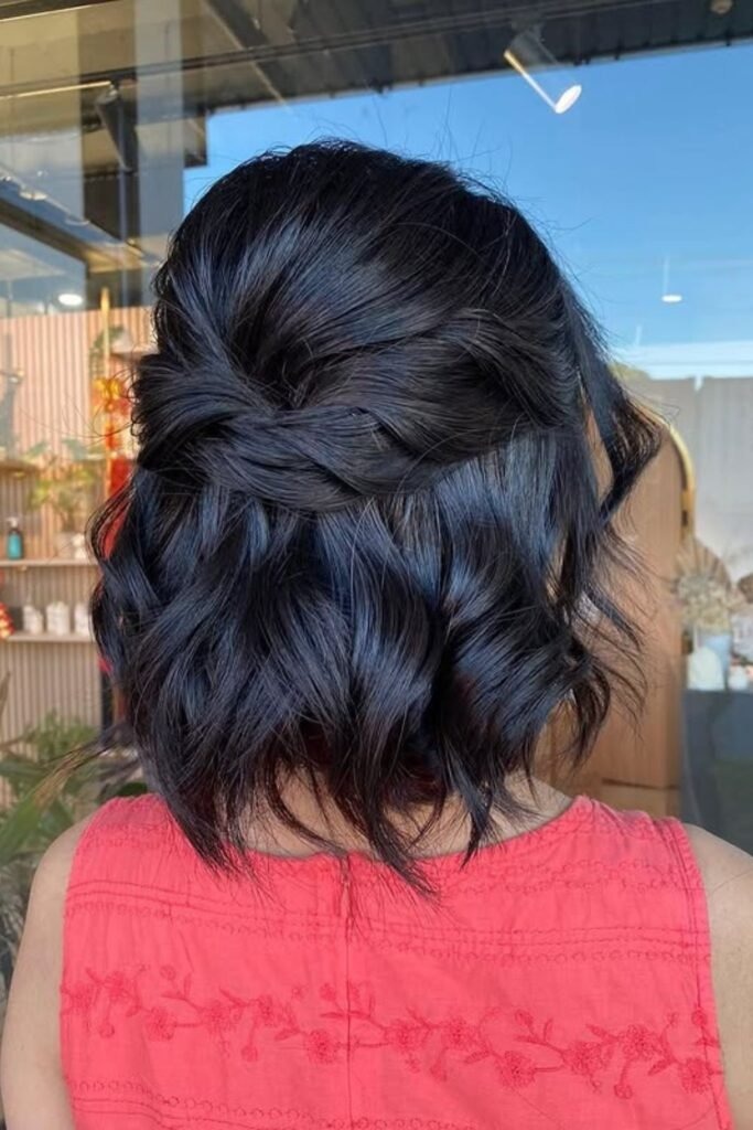 The twisted half-up is simple but very effective for short hair. It lifts the top section while keeping the rest relaxed. This style adds shape without pulling too tight.