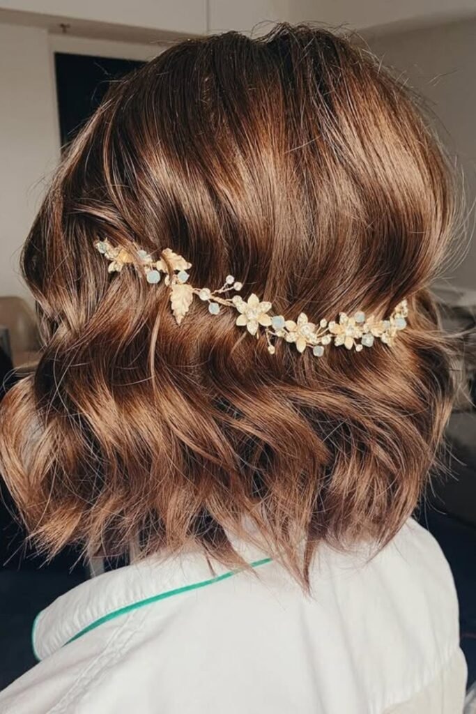 Pearl-pinned waves are a soft and clean way to dress up short hair. The waves add movement, while the pearls add focus without making the hair heavy. This style works best on bobs and short layered cuts.