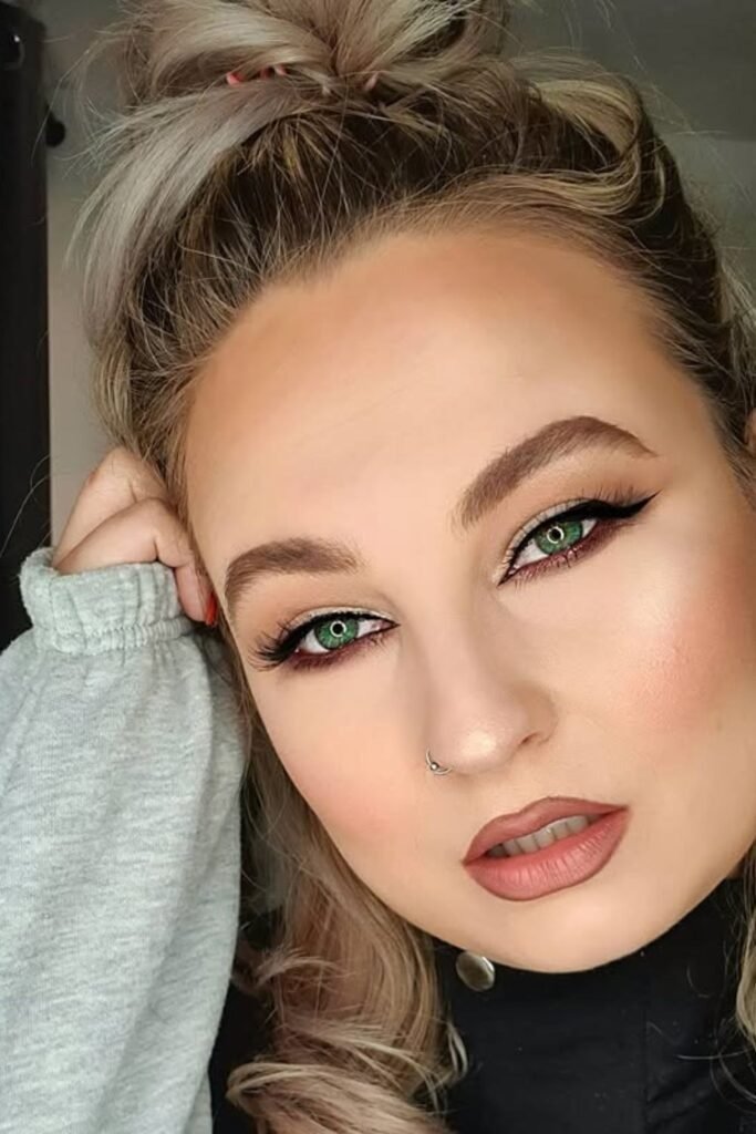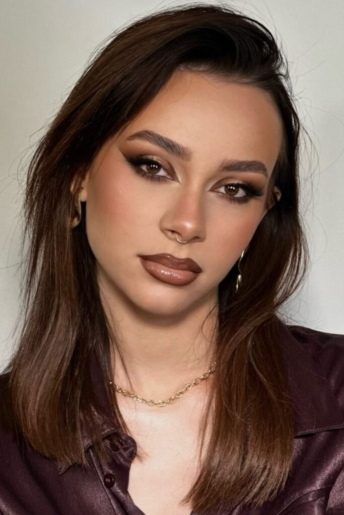 Chocolate brown shades are ideal for depth and subtle lift. Blend a medium chocolate above the crease and a darker brown at the outer corner, fading it upward. Keep the lid slightly lighter to enhance the illusion of space. Add mascara to define lashes. This look is sophisticated, neutral, and suitable for both day and night.