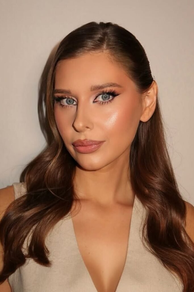 Soft glam focuses on enhancing the natural eye shape. Use warm matte browns in the crease and a slightly shimmery nude on the lid. Extend the crease color slightly above the hood to make your eyes appear lifted. Keep eyeliner thin and tight to the lash line, adding a slight flick at the outer edge. This approach balances glamour with subtlety and works well for both day and night occasions.