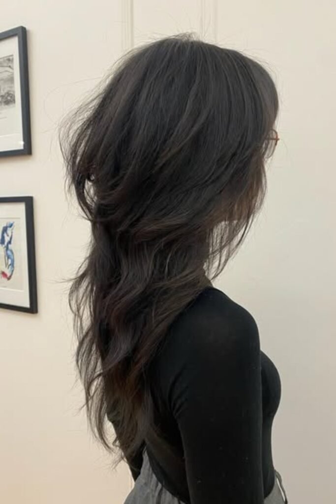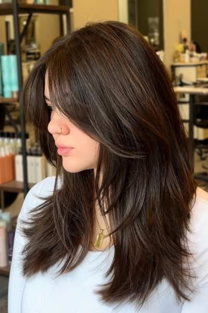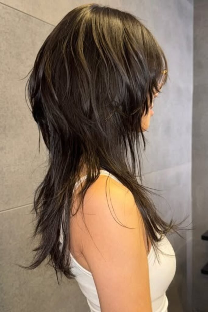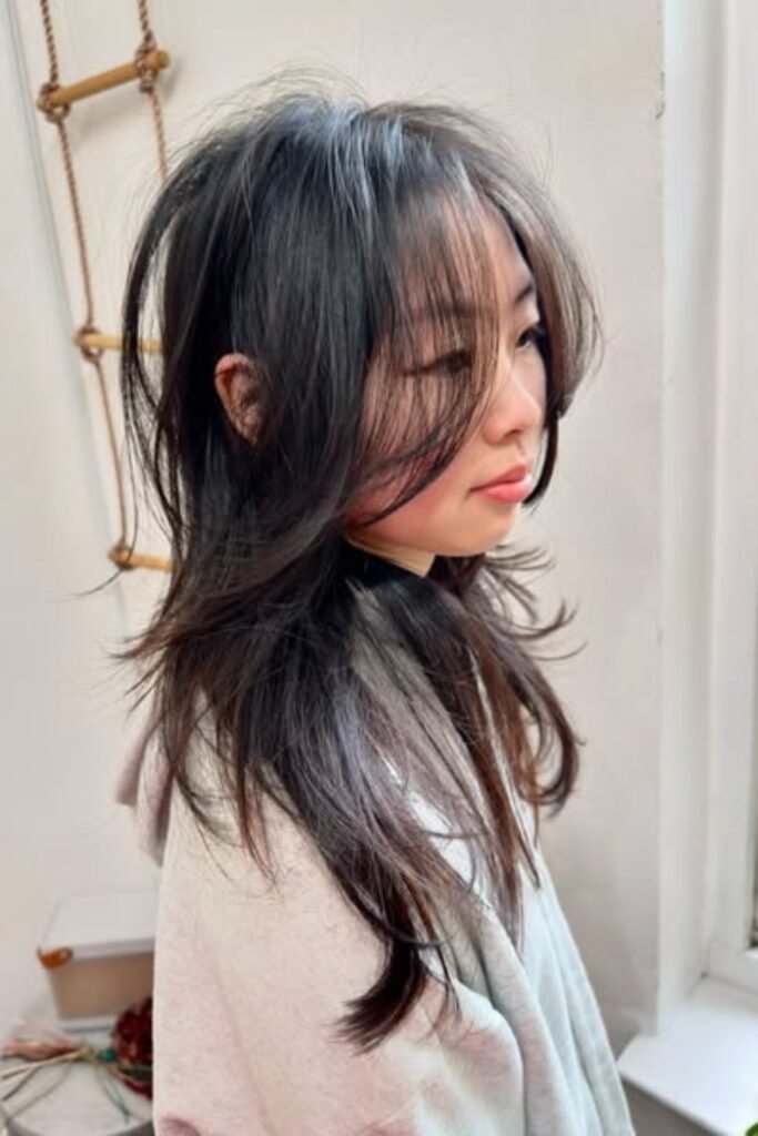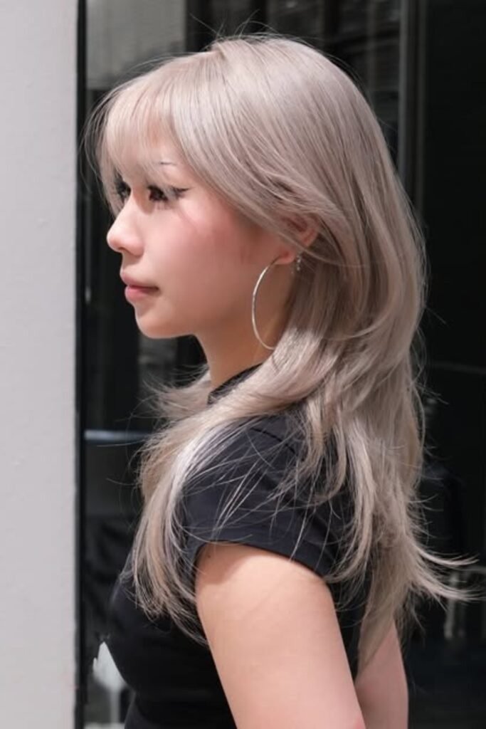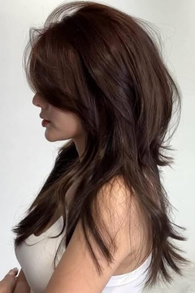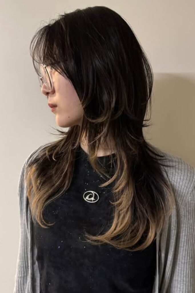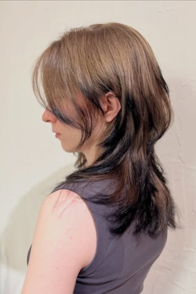 Two-tone shaping layers add depth to a hush cut. By combining darker roots with lighter ends, this style creates visual interest and highlights the layered texture. The hush cut’s feathered layers blend seamlessly with color transitions, giving a lively, voluminous appearance. This look works well for women who want dimension without losing length. To maintain vibrancy, use color-protecting shampoos and occasional gloss treatments to prevent dullness.
