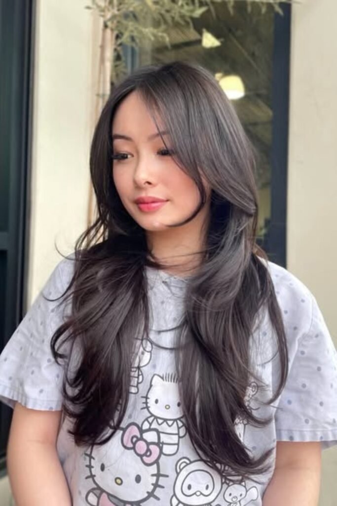 Volumized side sweep layers combine volume with directional movement. The hush cut is shaped to sweep hair across the forehead or to the side, emphasizing asymmetry and dimension. This style works well for straight or wavy hair and creates a polished yet relaxed look. Root-lifting products or volumizing sprays help maintain body throughout the day.
