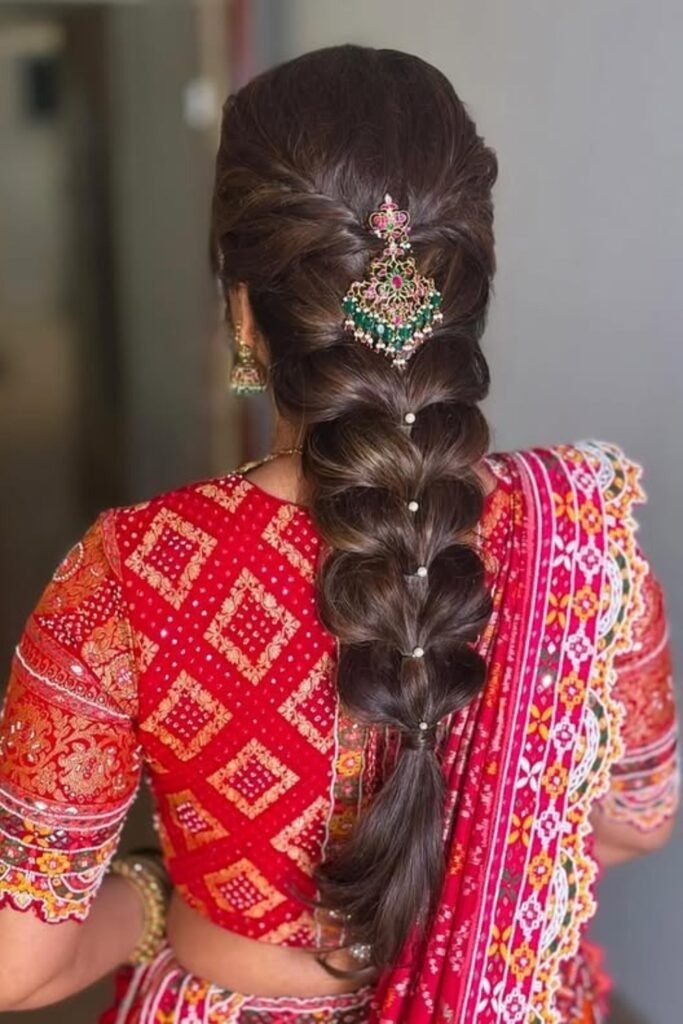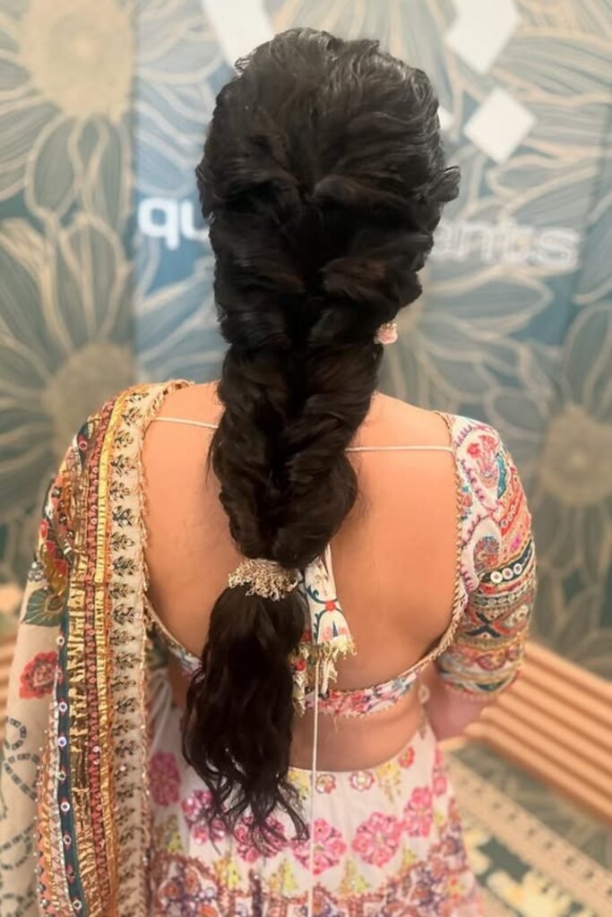 It pairs beautifully with silk sarees and gold jewelry. The braid looks detailed without being heavy.