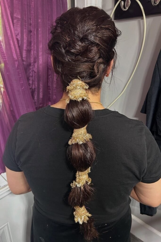 This braid combines bubble sections with gold thread or wraps. It brings a rich, traditional feel.