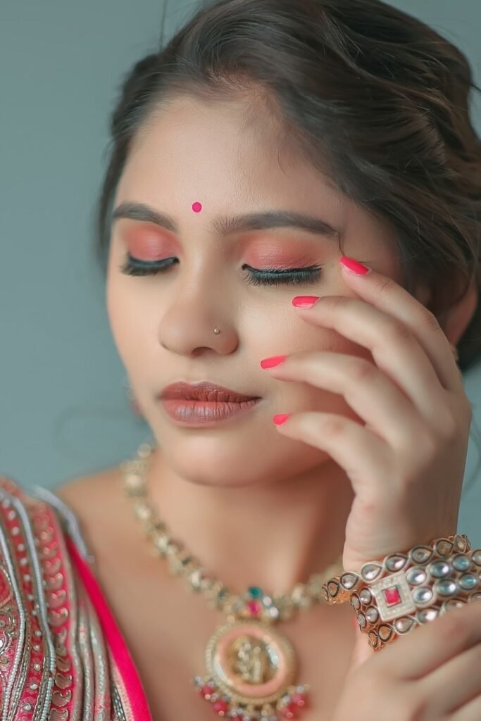 For weddings, shimmer is still used, but it is blended well. For daily wear, women prefer light foundation, kajal, mascara, and a soft lip tint. The goal is balance. The skin should look like skin.