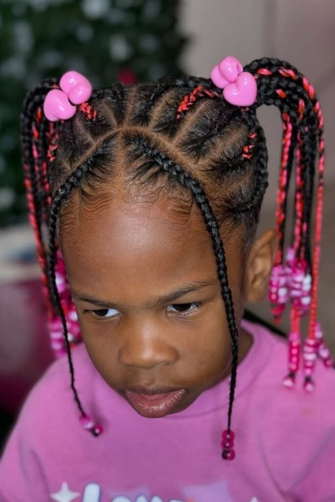 Rainbow braids bring excitement and confidence. Kids love showing their favorite colors, and parents can relax knowing the natural hair stays protected. This style is best when not too tight and kept light.