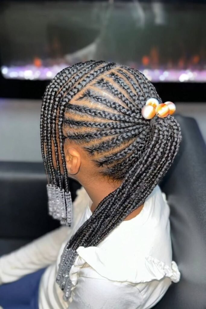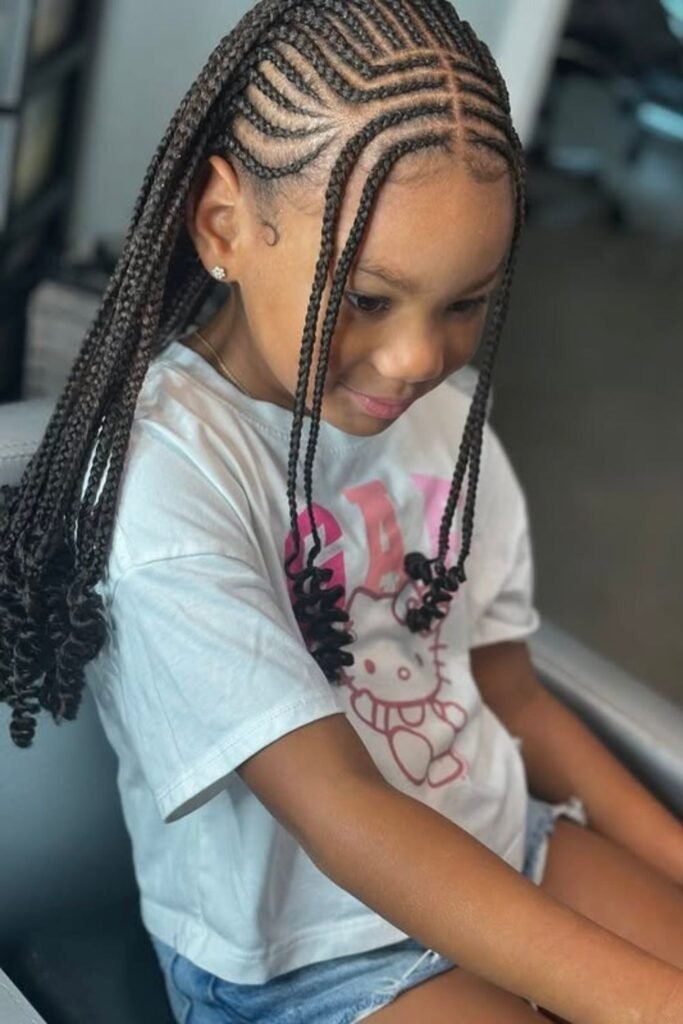 Stitch braids create clean, defined lines across the scalp. They look neat and last long when done correctly. For kids, stitch braids should always be done gently.