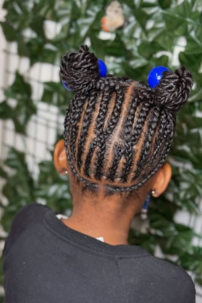 This style feels light on the head when done correctly. The bun should never feel tight or heavy. Braided buns also make it easy to add small beads or ribbons for a soft, playful look. Kids love how neat this style feels, and parents love how long it lasts.