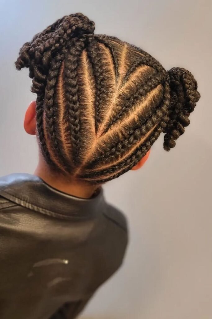 Zigzag cornrows add fun patterns to classic braids. The zigzag parting makes the style exciting without extra tension. Kids love the playful design.