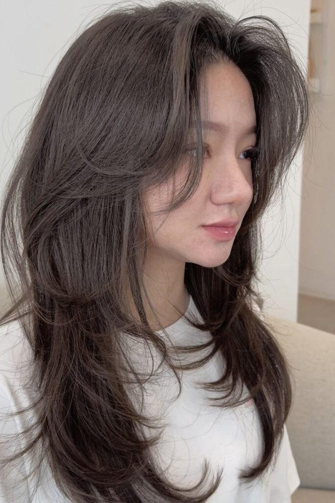 The hush cut is one of the strongest Korean hair trends in 2026. It features long, airy layers with soft volume at the crown.