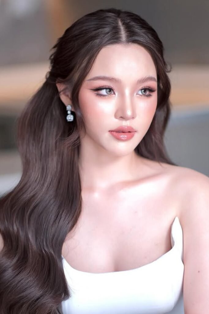 This style mixes Korean softness with classic glamour. It is ideal for parties and formal nights.