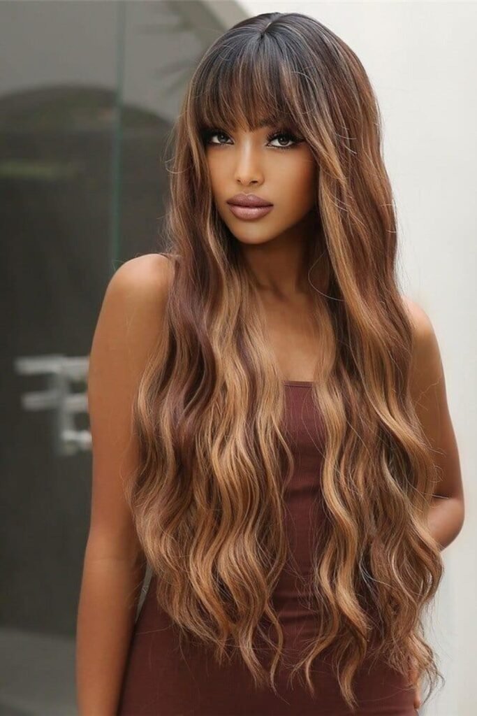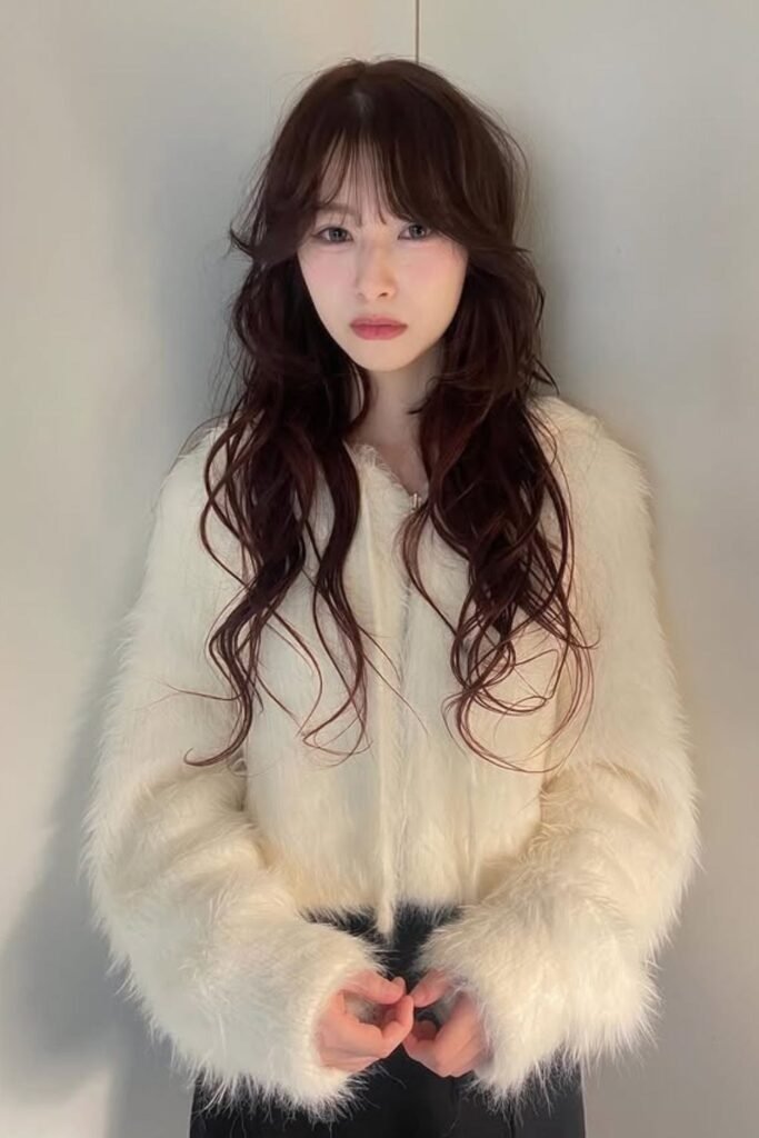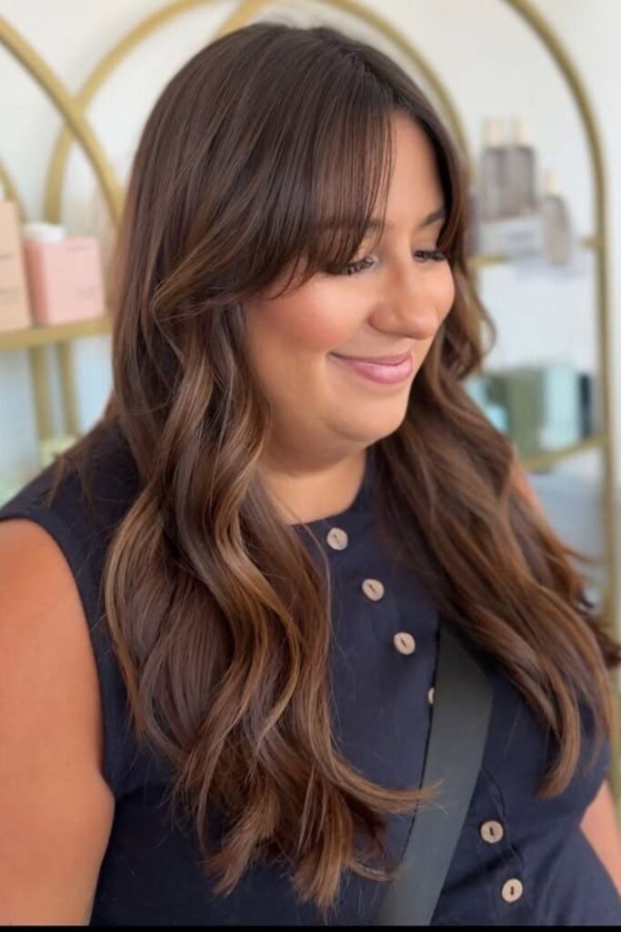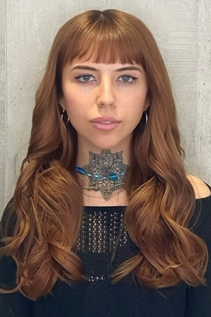 Full fringe waves combine long hair with a soft fringe. The fringe blends into the waves, creating balance. This style works best when the fringe is light and flexible. It adds interest without feeling heavy or dated.