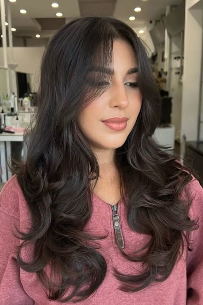Face-framing waves focus on shaping the hair around the face while keeping the length intact. The front pieces are cut slightly shorter and blended into long layers. This helps highlight facial features without overpowering them. It is a subtle change that makes a big difference, especially when worn loose.