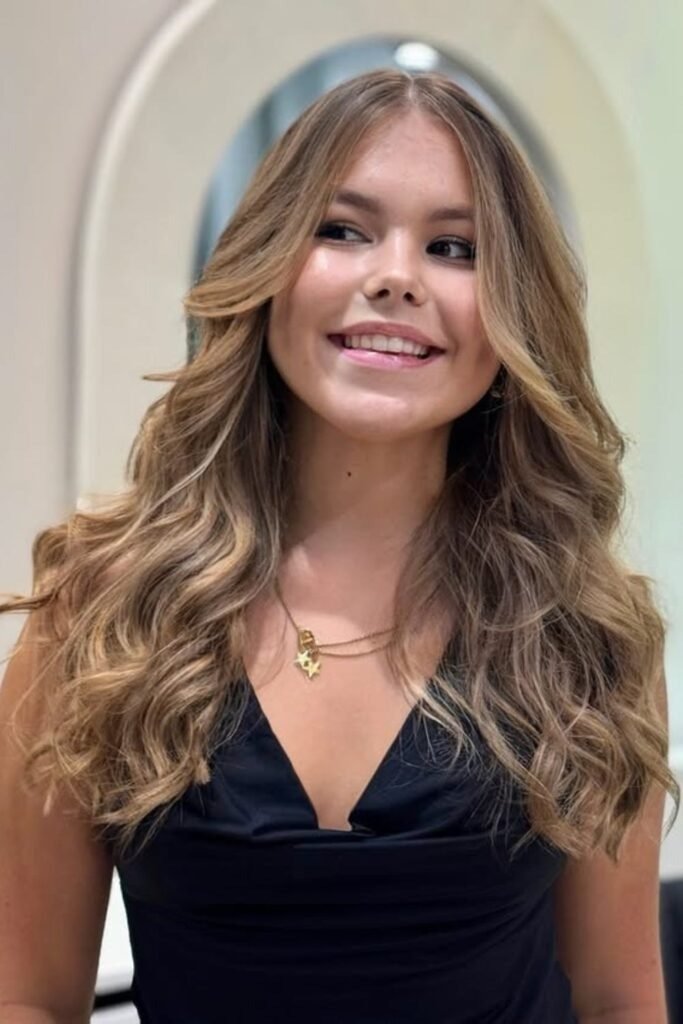 Soft layered waves are a safe and timeless choice for long hair. The layers are light and spread out, allowing the waves to sit naturally without looking heavy. This cut works well for medium to thick hair because it removes weight without thinning the ends too much. The result is hair that moves freely and looks healthy. It is easy to style and even easier to maintain, which makes it perfect for everyday wear.