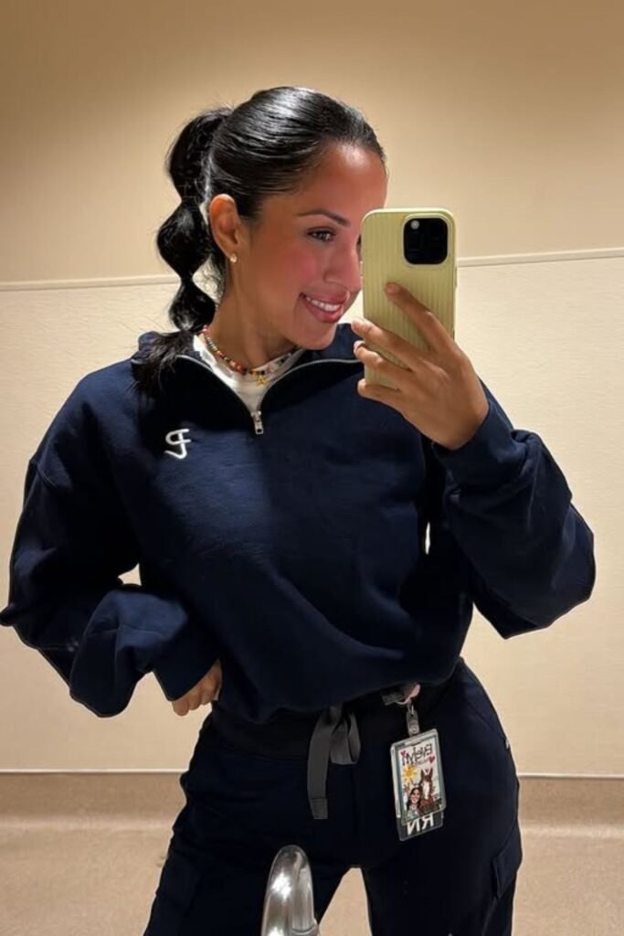 The messy top bun is popular because it is fast and forgiving. It allows nurses to secure hair quickly before a shift starts. When done correctly, it stays in place without tight wrapping. The bun should sit high enough to avoid neck pressure but not so high that it feels unstable.