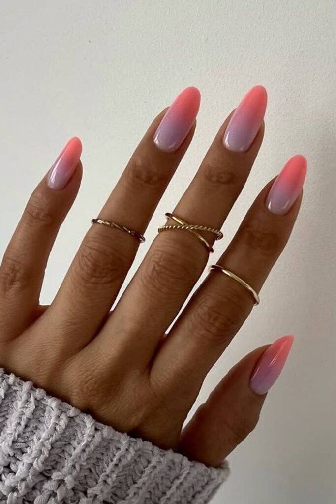 Oval nails are another strong option. They give enough space for a gentle blend without making the nails look sharp. This shape works very well for soft pinks, nudes, and classic French-style ombre designs.