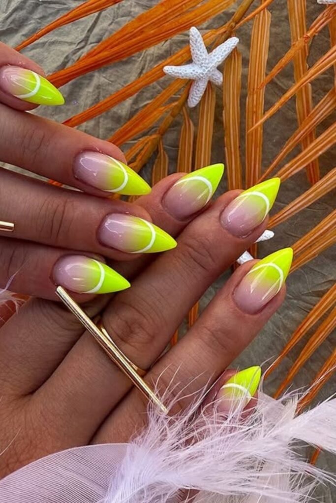 Neon French fade adds a thin neon color into a soft French ombre. The neon is subtle and placed carefully. This style is for those who want a small pop without going bold.