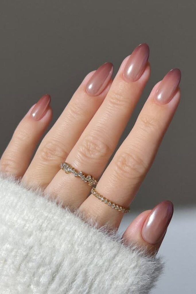 Cocoa glass nails blend brown shades with a glass-like finish. The shine is clear and smooth. This style is modern and very popular in 2026 for its clean look.