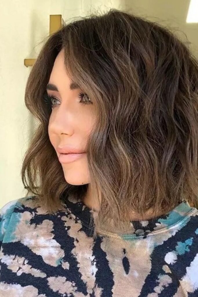 Wavy textured bobs provide a relaxed, youthful feel without excessive styling. Hair is cut to chin length with gentle layering to encourage natural waves. The texture adds volume and dimension, while the bob shape keeps the style tidy. This look works well with fine hair, as the waves create the illusion of thickness. Using a lightweight sea salt spray or curl-enhancing cream enhances natural texture without stiffness.