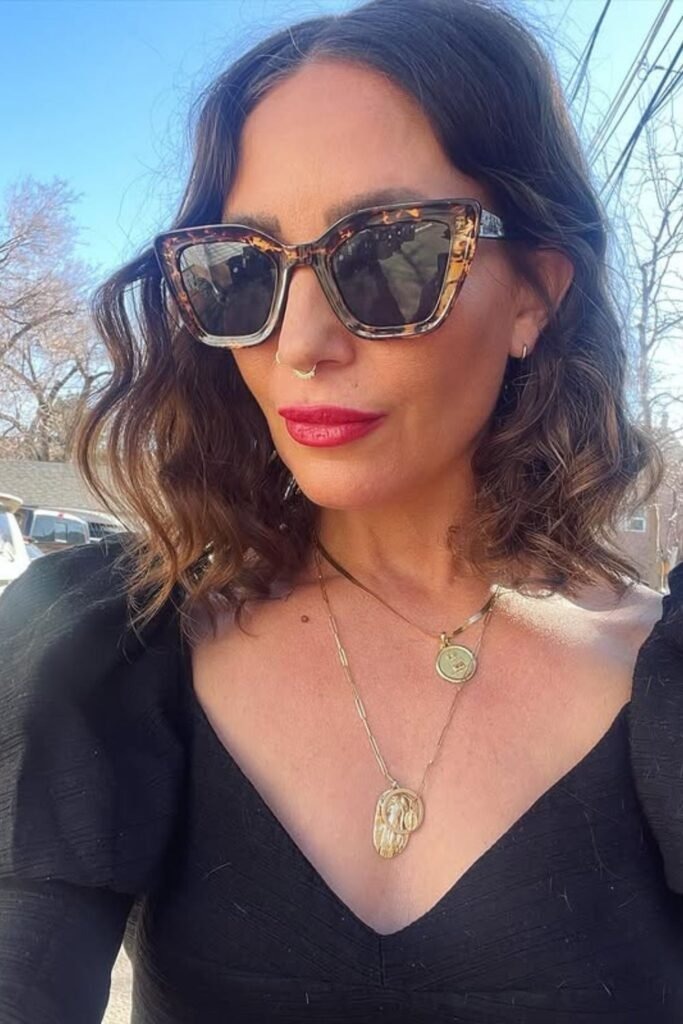 Mid-length hair styled in tousled waves balances sophistication and ease. Hair falls between the shoulders and collarbone, with layers for texture. Soft waves can be achieved using a curling wand or braiding overnight. This look is versatile and works well for women transitioning to lighter or gray tones.