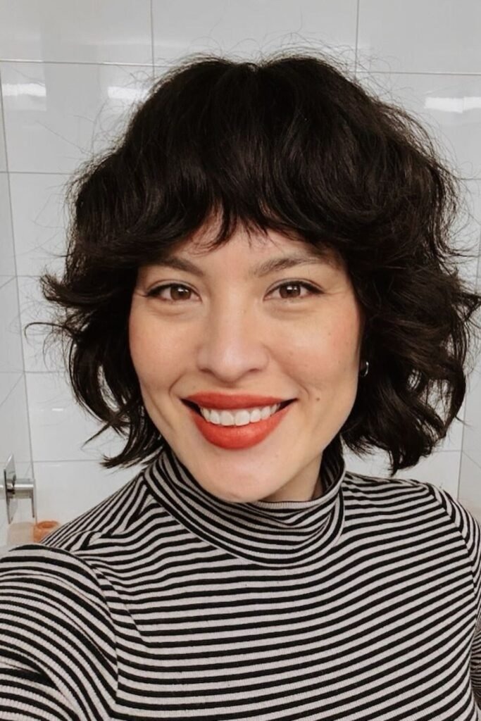 The shag bob reappears in 2026 as a modern, textured style. Hair is cut in layers that start near the chin, creating volume around the face. Curly hair in this cut gains movement and bounce, while medium-length strands keep styling manageable.