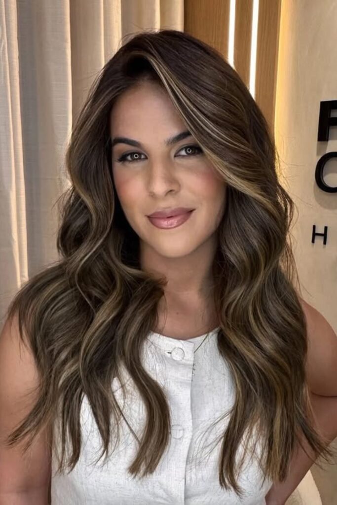 Long contour layers offer length while creating movement and shape. Hair is cut in subtle layers to follow the face’s natural contours, adding softness around the jawline and neck. This cut works for straight and wavy hair, enhancing natural volume without heavy styling.