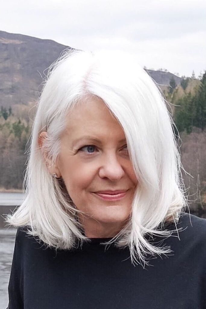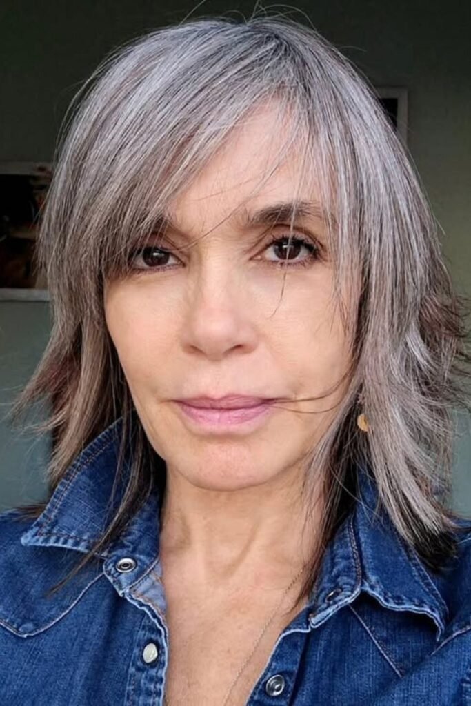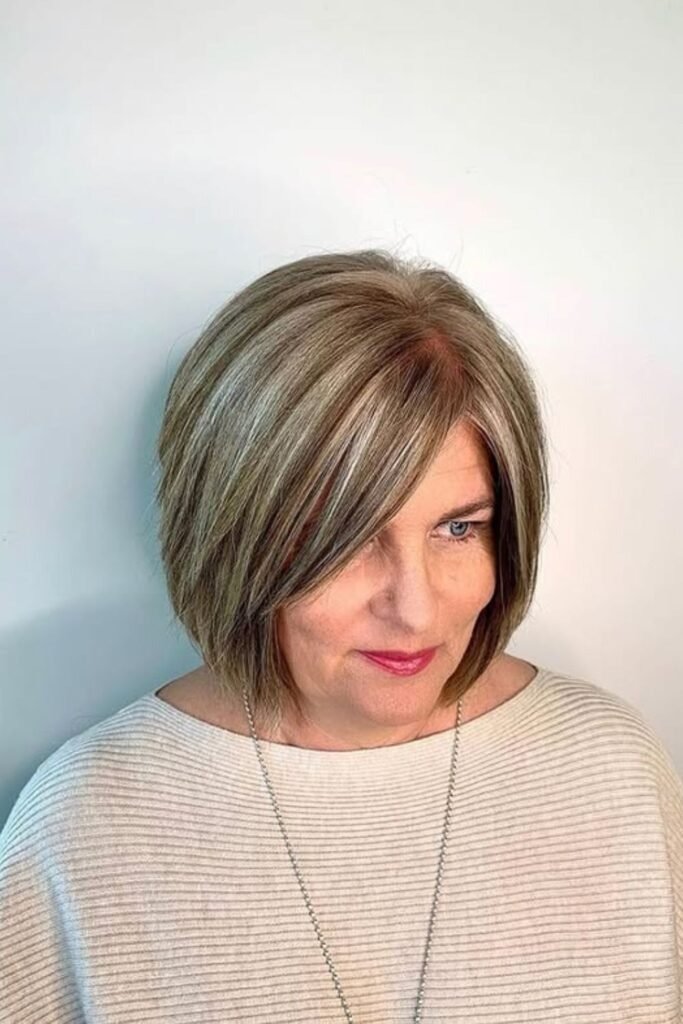 A blunt bob with fringe adds structure and modernity. The fringe can be styled straight, side-swept, or wispy, depending on your face shape and personal preference. This cut emphasizes the eyes and softens the forehead, creating a balanced look for women over 50.