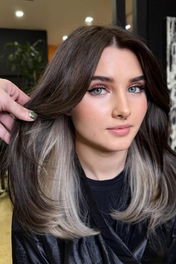 This style works well with straight and sleek cuts. It gives a clean and modern feel. Silver peekaboo is popular among people who want a calm but noticeable change.