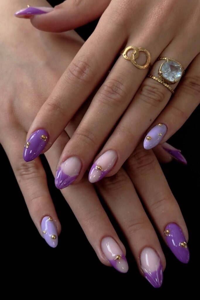 In 2026, purple nails are not just one shade. Soft lilac, dusty lavender, deep plum, and shiny chrome purple all have a place. Nail artists are mixing purple with gold, white, clear polish, and soft glitter. The focus is on clean designs that still feel special.