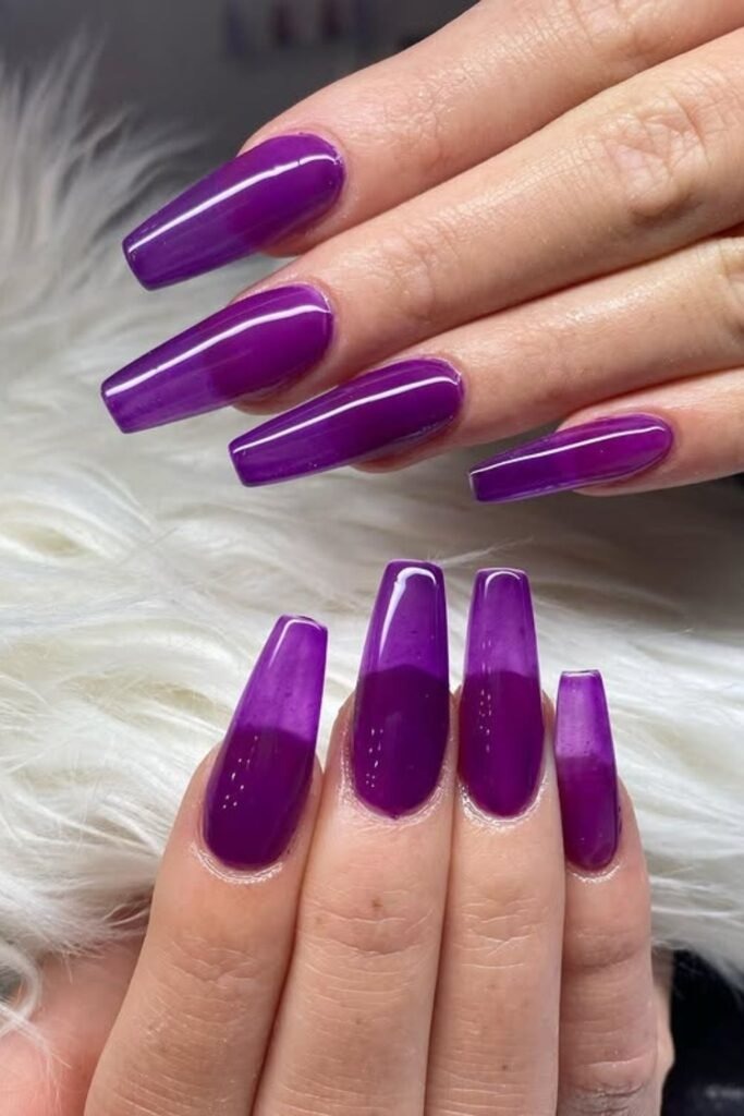 This style works best on medium to long nails. It is a good choice for summer, parties, or travel. Candy purple shows confidence and joy without needing extra art.
