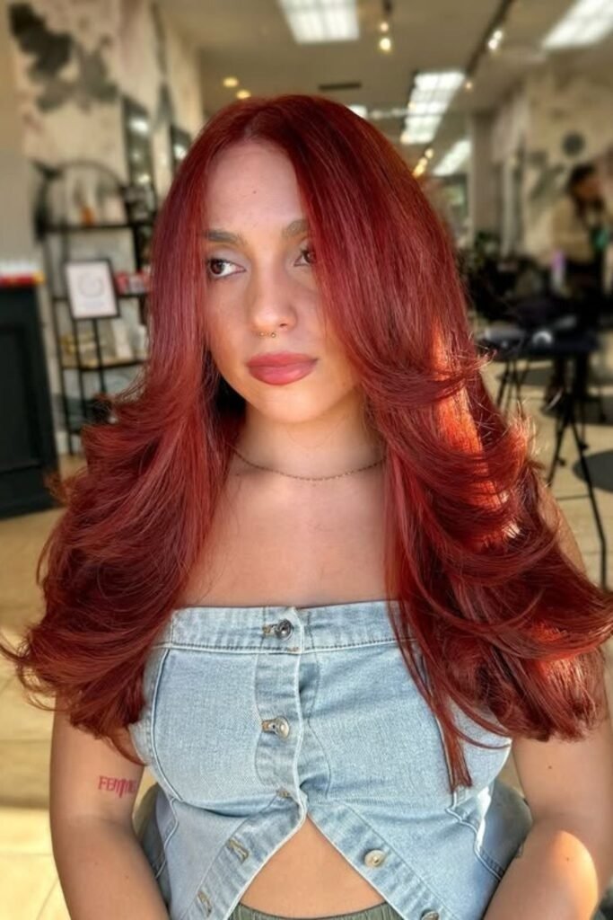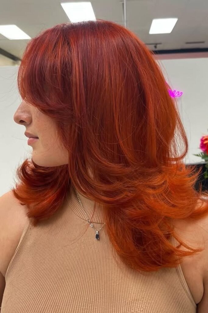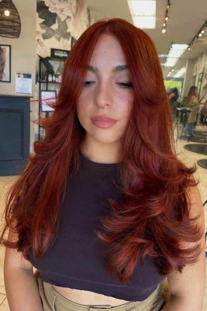 Sunset copper mixes red, orange, and gold tones. It changes color in different light. This shade looks dynamic and works well on layered hair. It feels lively and warm.