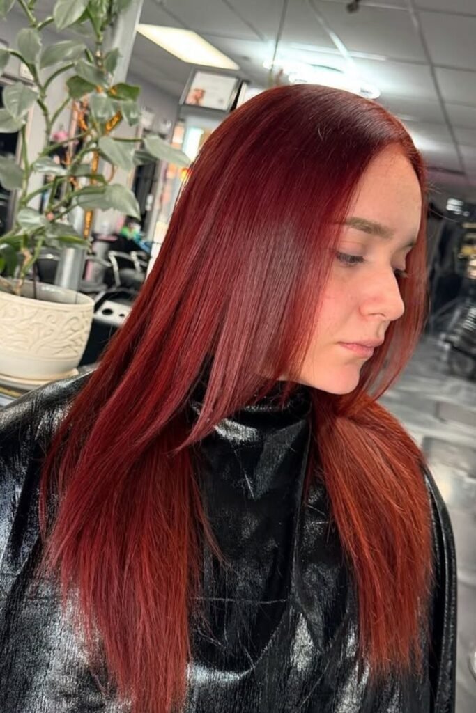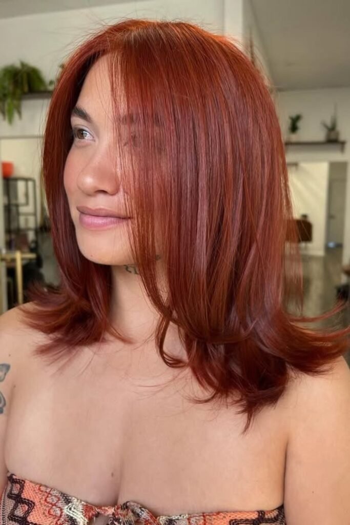 Scarlet copper leans more red than orange. It feels strong and classic. This shade suits confident styles and deeper skin tones.