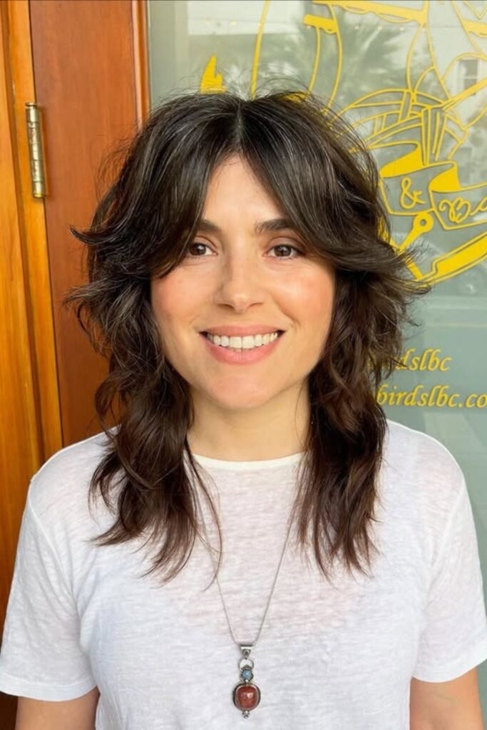 Curly hair and shag cuts belong together when done right. The curly mid shag uses layers that follow the curl pattern instead of cutting against it. This keeps curls bouncy and defined.