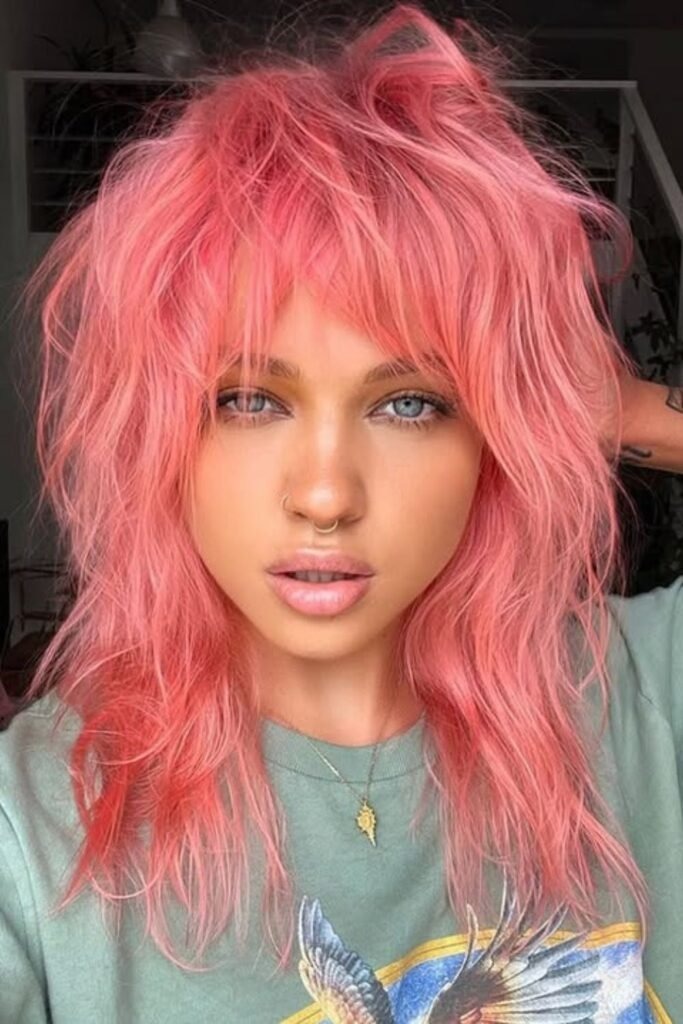 The vivid layered shag is all about clear movement. Layers are cut with intention, not randomly, so each section flows into the next. This style works best on medium to thick hair because it shows depth without feeling heavy. The layers create space between strands, which makes the hair look active even when still.